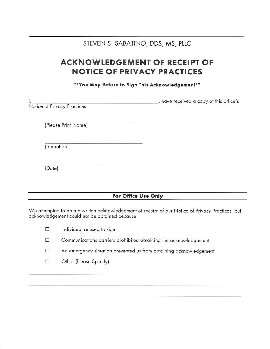 Dr. Sabatino sets aside a dedicated one hour for your visit.